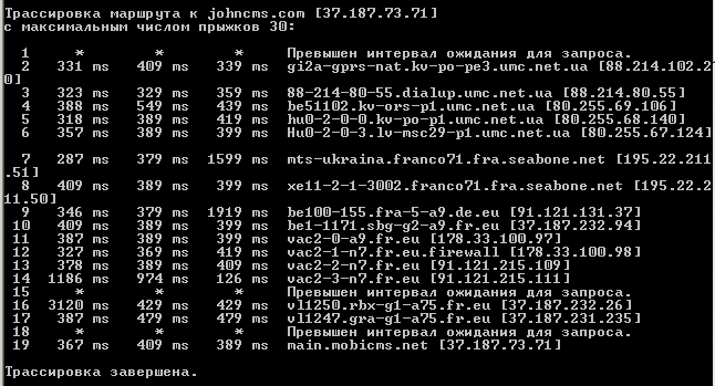 tracert johncms.com