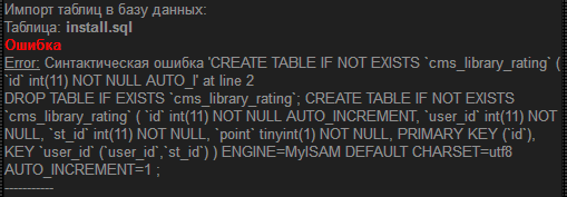 ) ENGINE=MyISAM DEFAULT CHARSET=utf8 AUTO_INCREMEN Установил себе на сайт Магазин Сайта для JohnCMS 5, но потом начало выбивать эту ошибку