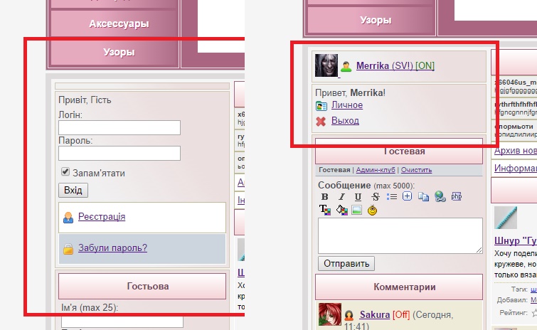 Помогите объединить два кода для вывода на главную : для зарегистрированных инфу о себе, которая меняется на форму входа для гостей