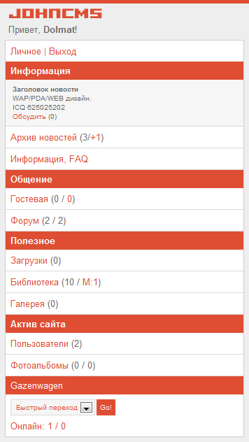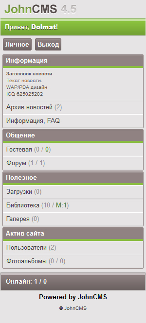 Представляю вашему вниманию мой очередной дизайн для JohnCMS 4.5