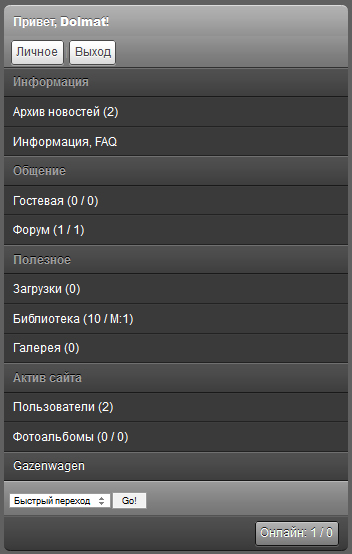 Личное меню