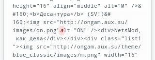 NetsMod, Посмотри на скрин, после кавычек перед alt поставь пробел. Из-за того, что слитно их сделал бъет ошибку.