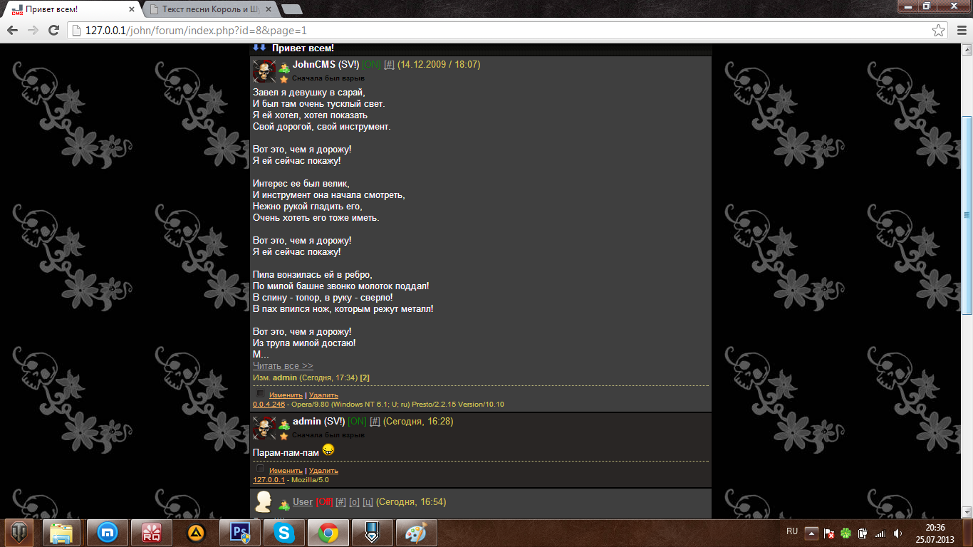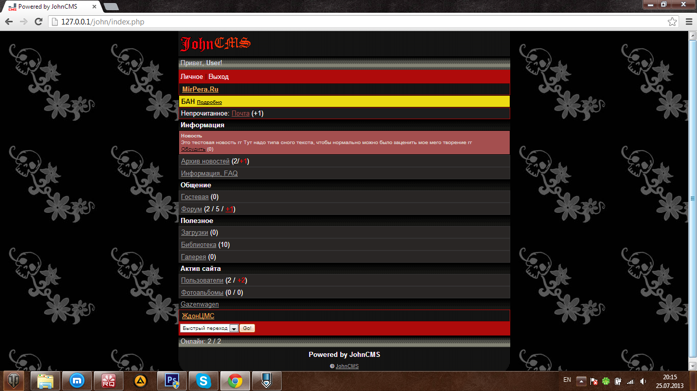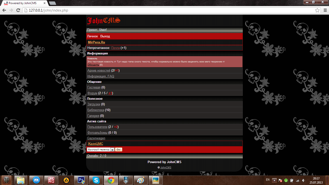И так, поехали. Мое самое первое творение, дизайн в темных тонах. Косяки конечно же есть, но на то он и первый. Все, оправдался, теперь можно и залить на показ гг Скрины будут ниже, так что не спешите. 5 штук ![]()
