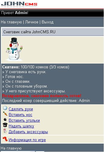 Суть игры заключается в том, что общими усилиями всех пользователей сайта вы сможете слепить снеговика для сайта.