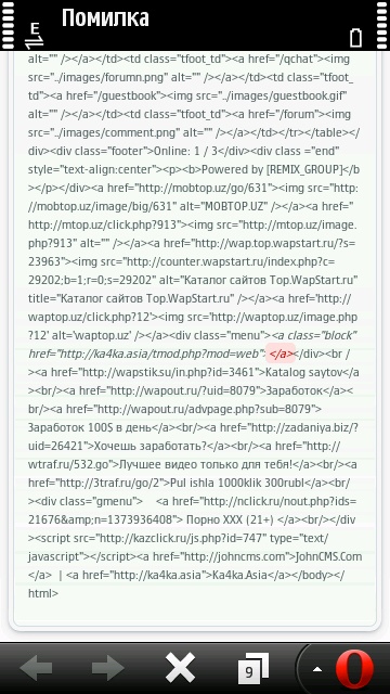 tolya71, Нет у меня symbiаn 9.4 ну ладно тогда подскажите где ошибка не нашель смотрел маинмену.пхп и энд.пхп там не видел ошибок
