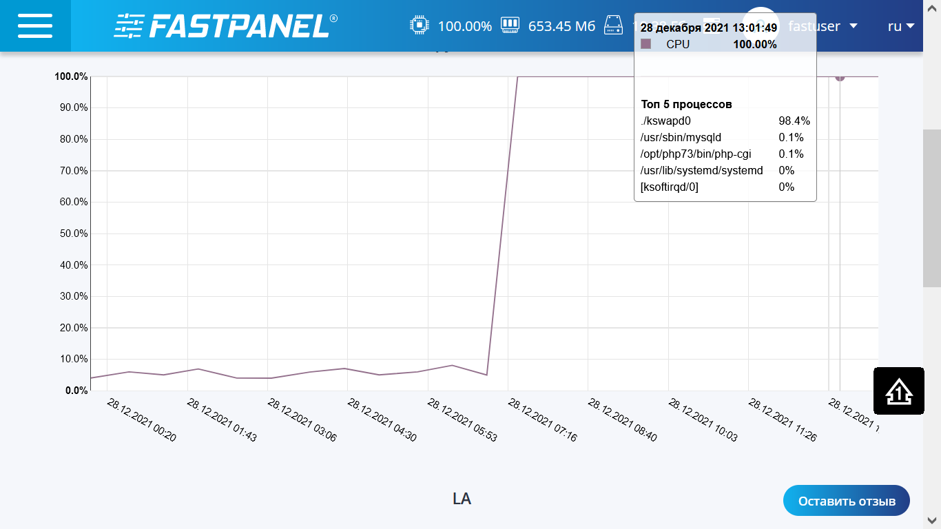 Нагрузка до 100% откуда то взялась и не падает. Перезагрузка не помогает.