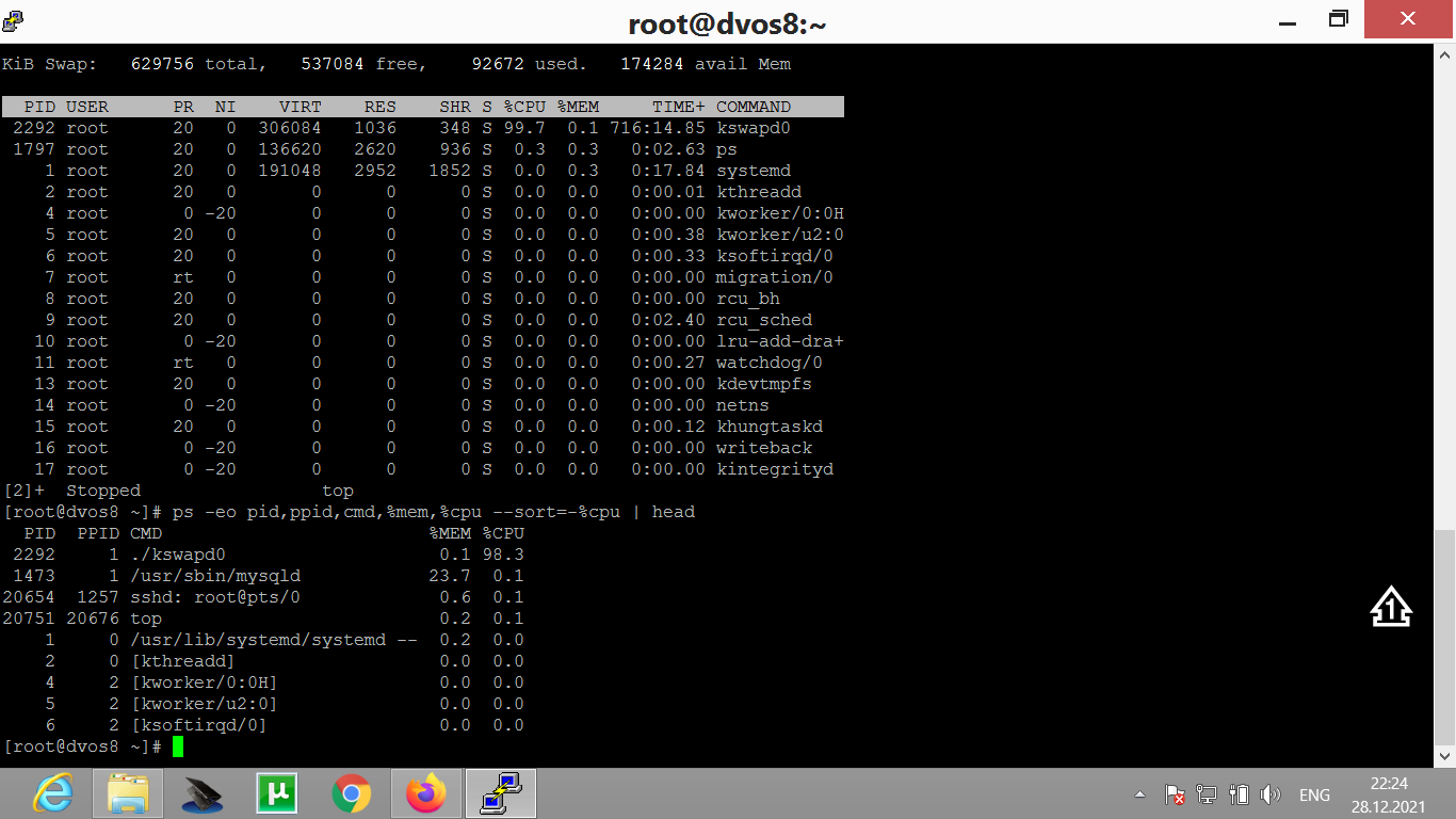 ps -eo pid,ppid,cmd,%mem,%cpu --sort=-%cpu | head kantry, Выполнил - а как свап остановить?