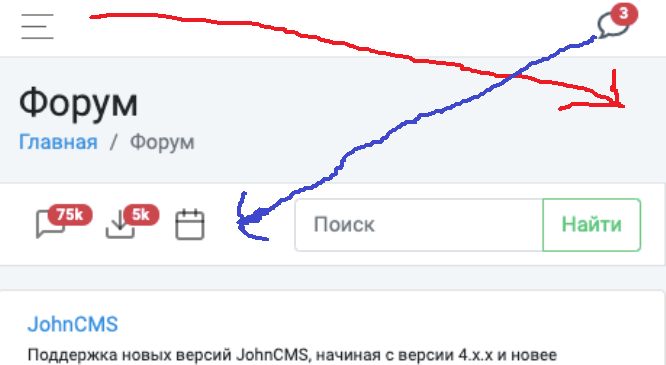 Верхняя иконка будет в верхней панельке. Там будут уведомления и она никак не относится к форуму. Кнопка меню тоже переезжать не будет к форуму. Форум это заголовок h1 и он может быть длинным.