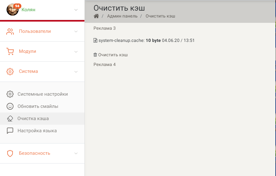 <?phpdeclare(strict_types=1);defined('_IN_JOHNADM') || die('Error: restricted access');$data = ['title' => 'кэш', 'page_title' => 'Очистить кэш', ];$nav_chain->add('Очистить кэш', '?');// --------------- Функция правильного вывода веса файла -------------------//function formatsize($file_size) { if ($file_size >= 1048576000) { $file_size = round(($file_size / 1073741824), 2)." Gb"; } elseif ($file_size >= 1024000) { $file_size = round(($file_size / 1048576), 2)." Mb"; } elseif ($file_size >= 1000) { $file_size = round(($file_size / 1024), 2)." Kb"; } else { $file_size = round($file_size)." byte"; } return $file_size;}// --------------- Функция форматированного вывода размера файла -------------------//function read_file($file) { if (file_exists($file) && is_file($file)) { return formatsize(filesize($file)); } else { return 0; }}function clearCache() { // Выбираем все файлы с названием и расширением $cachefiles = glob(CACHE_PATH.'*.*'); $cachefiles = array_diff( $cachefiles, array( // Запрещаем удаление снимка Антишпион CACHE_PATH.'security-scanner-snapshot.cache', // 'Через апетую можно добовить другие исключения', ) ); if (is_array($cachefiles) && count($cachefiles)>0){ foreach ($cachefiles as $file) { unlink ($file); } } return true;}$mod = isset($_GET['mod']) ? trim($_GET['mod']) : '';switch ($mod) { //\\// Удаление файлоф кэша case 'clear': clearCache(); header('Location: ?'); break; //\\// Вывод всех файлов с размером и датой default: $chefiles = glob(CACHE_PATH.'*.*'); $total = count($chefiles); if (is_array($chefiles) && $total > 0){ foreach ($chefiles as $file) { // Временная подсказка echo '<div class="m-5">'.$name.'</div>'; $data['caches'] = [ [ 'name' => basename($file), 'size' => read_file($file), 'date' => $tools->displayDate(filemtime($file)), ], ]; } // Подключаем шаблон index.phtml и передаем в него собранные выше данные echo $view->render('admin::caches', ['data' => $data]); echo '<i class="fa fa-trash-o"></i> <a href="/admin/caches/?mod=clear">Очистить кэш</a><br />'; } else { echo 'Нет данных'; } echo '<br />Всего файлов: '. $total .'<br /><br />';}