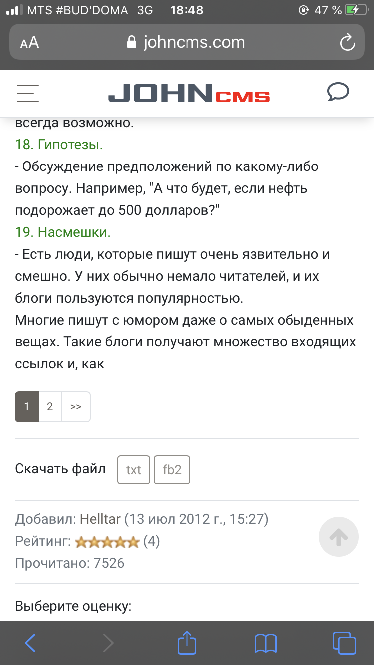 Как сделать на сайта johncms статии разбиение на несколько страниц?