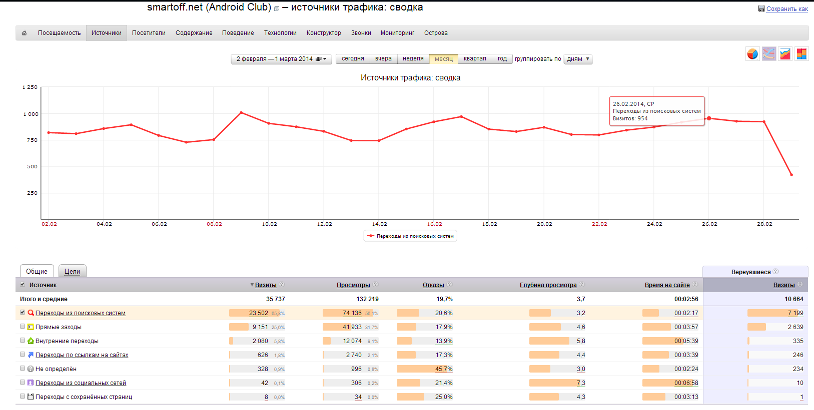 # Kip-OK (01.03.2014 / 14:21)тут у тебя немного неверная постановка вопроса, ты считаешь временными отрезками, но если (как в моем случае) посещалка держится на контенте, то мерить надо обьемом этого самого контента, т.е. понадобилось столько времени, за сколько я наполнил сайт до текущего уровня, и за сколько это все проиндексировали.