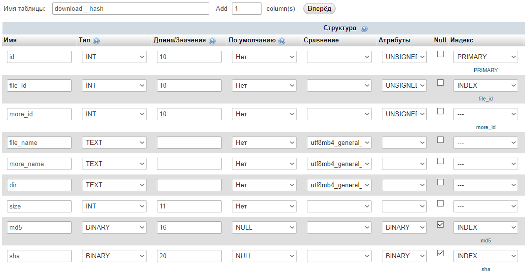 # Chifty (10.09.2018 / 10:23)Зачем тебе еще таблица? Добавь поле для хеша, и достаточно, я те вроде выше понятный пример привел))