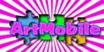 Нарисуйте пожалуйста лого небольшого размера с надписью ArtMobile, прозрачное и с мобильным телефоном. Желательно прозрачное в голубой расцветке.