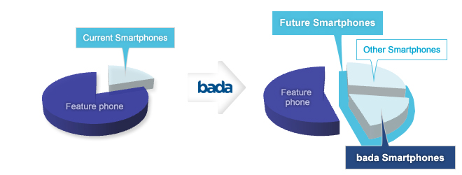 Samsung bada поможет разработчикам мобильных приложений расширить бизнес. Целью Samsung является выпуск новых успешных моделей телефонов. В 2009 году более 220 миллионов покупателей приобрели телефоны Samsung. Более 40 миллионов людей в прошлом году стали владельцами с сенсорными экранами. Samsung bada будет моментально принят такими покупателями в этом году. Помимо этого, глобальное распространение мобильных телефонов Samsung и приложений Samsung Apps, магазин приложений, будет способствовать развитию бизнеса разработчиков. В 2010 году Samsung Apps распространит услуги для bada в 75 странах мира. Неудивительно. Грядет новая эра синего океана. Поспешите, и вы окажетесь среди первых покупателей на этом новом рынке.
