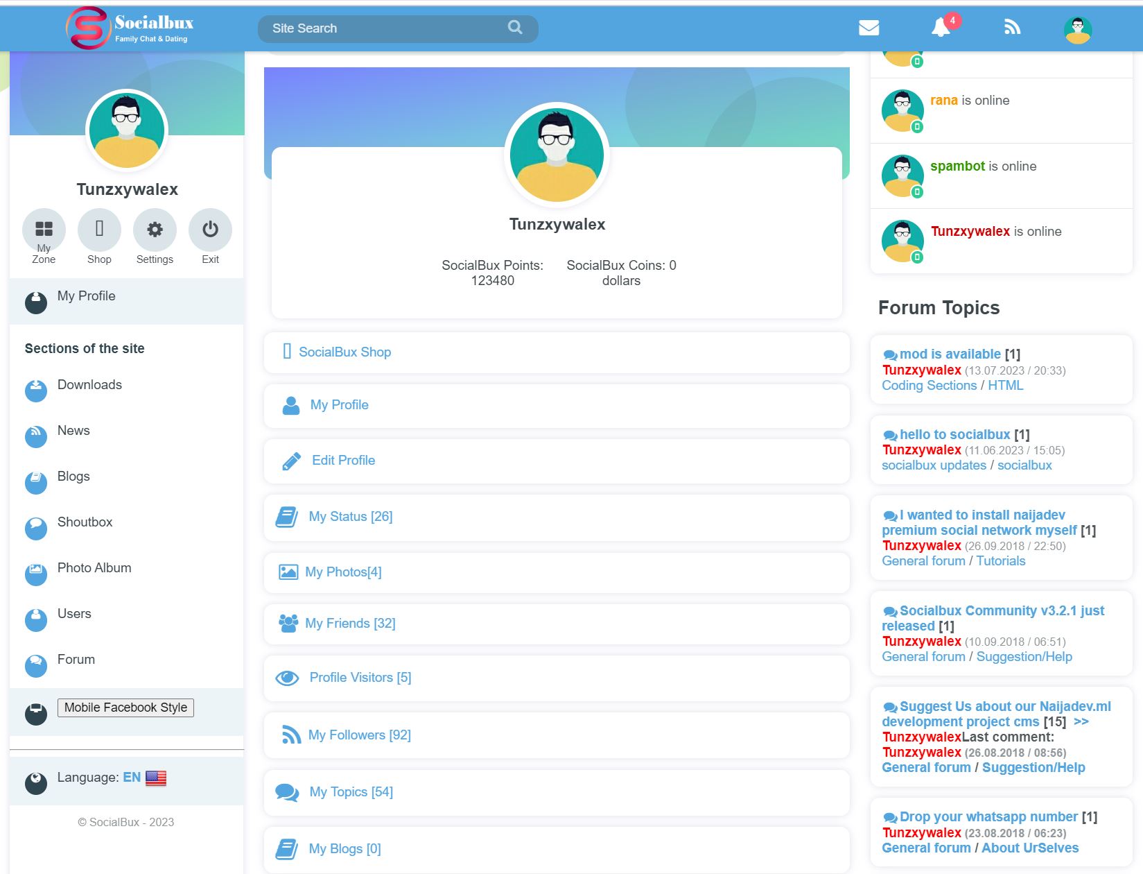 Gifts Forum Discussion Blogs download manager News Profile Free and Membership Sb Bootstrap 2NewsfeedBots welcome new member Bot post new topic to NewsfeedAnd lots more