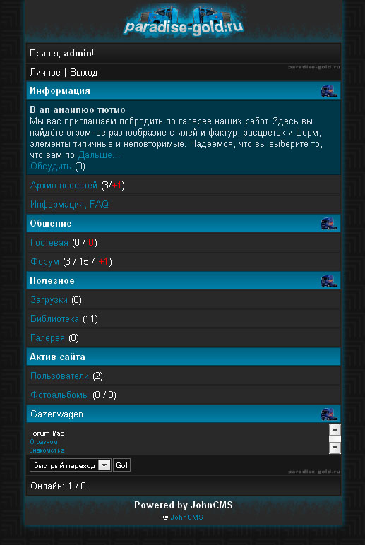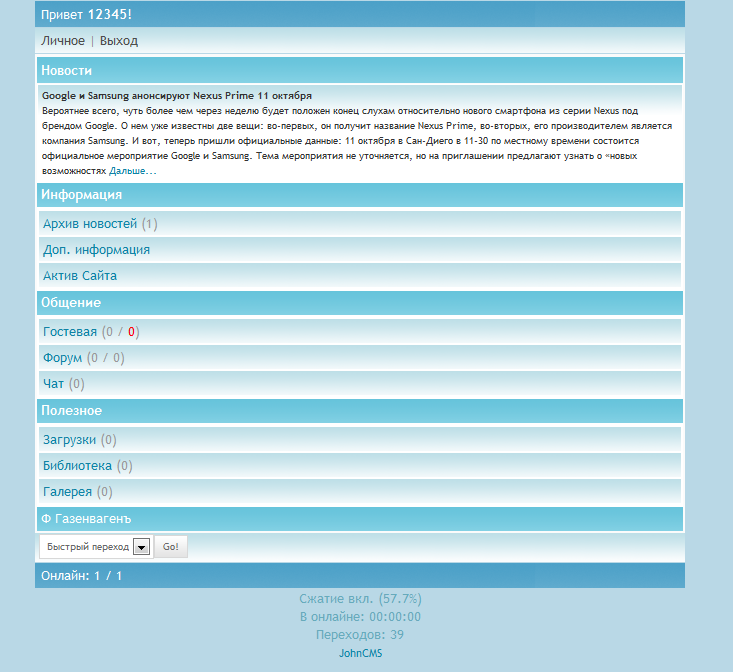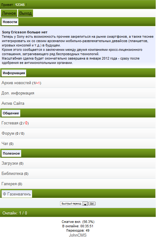 Продам модуль действий под JohnCMS 3.2.2