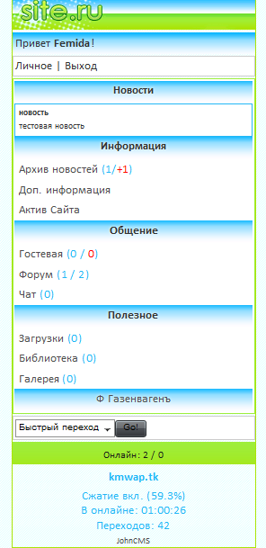 Для каждой темы (WAP и WEB) можно использовать отдельный head.php end.php (По умолчанию находятся в папки themes/wap/default/ для wap версий и themes/web/default/ для web) и mainmenu.php (По умолчанию находитс
