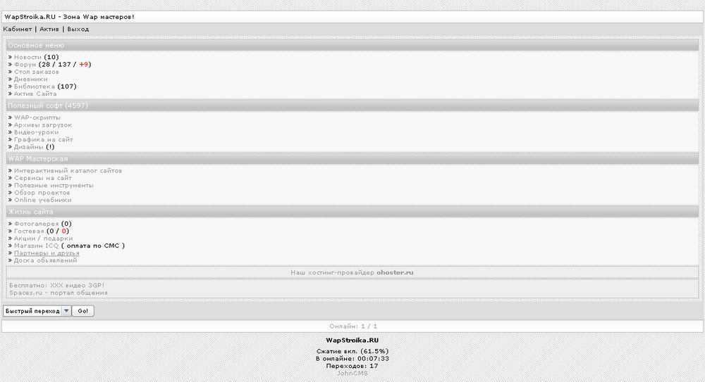 Продам дизайн, johncms 3.1. Цена 80wmr. Связть ICQ 7-718-290 и ЛС.