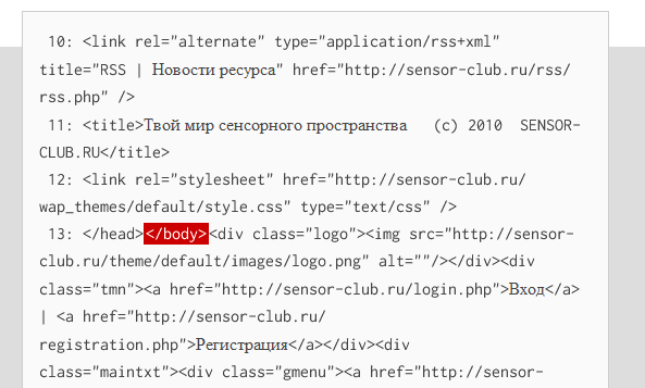 Вот страница где есть XML ошибка и наглядно видно что происходит с ногами и сайдбаром.