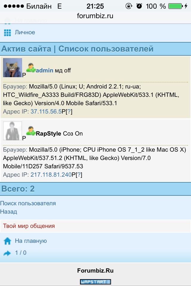 Статус внизу после аватара и данные браузера и последний визит после статуса.