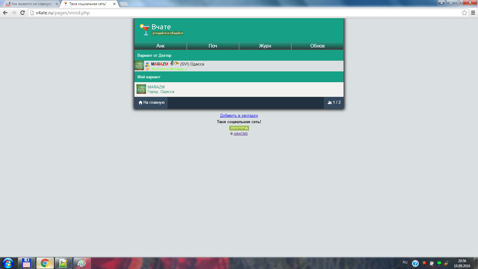 Наконец решился обзавестись чисто мобильным сайтом. Долго над выбором цмс не думал. Джон и только джон!! )) Хостинг есть, домен есть, и я узнаю что есть уже Мобицмс (ну как есть, по факту нету, но скоро будет). И Моби, в свою очередь, будет намного круче и интересней. Ведь если дядя Алькатраз взялся за дело, то я уверен что это будет Бомба.