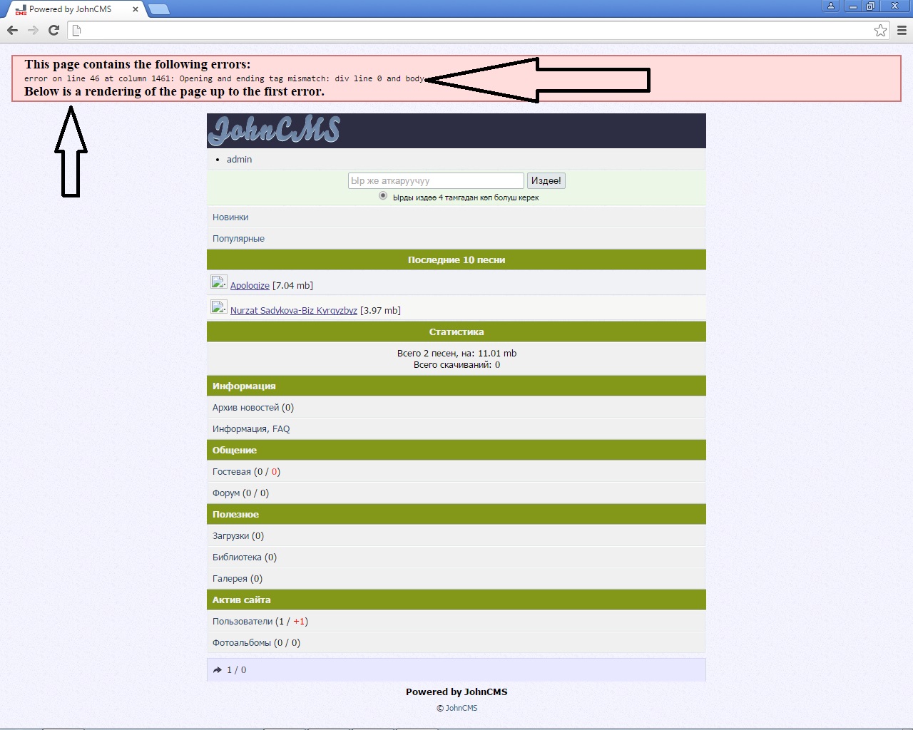 fanatos, еще когда захожу на ссылку 10 последних песен выкидывает на johncms на локалке делаю