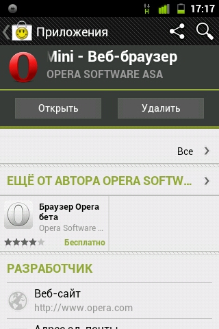 Pillott, Вот, зашел в маркет, поиск по Браузер Опера ничего не дал, всех нашел, кроме этого арбуза, зашел на там на страницу оперы мини и посмотрел инфу Еще от разработчика, там одна Опера Бета старая.