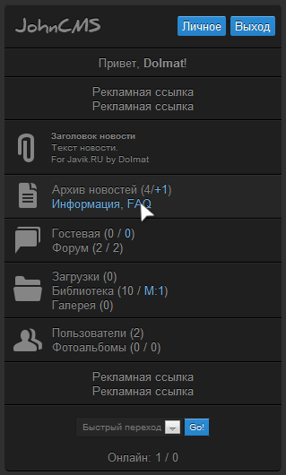 Продам тему для JohnCMS 4.5