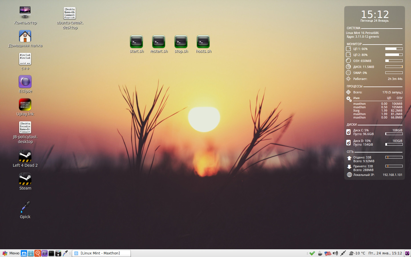 Собственно, полный дефолт. Только панель убрал и запилил некоторые виджеты.