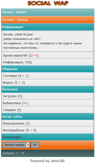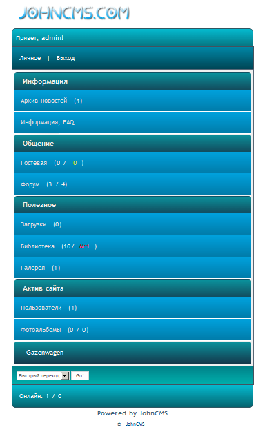Здесь буду выкладывать свои темы для JohnCMS.