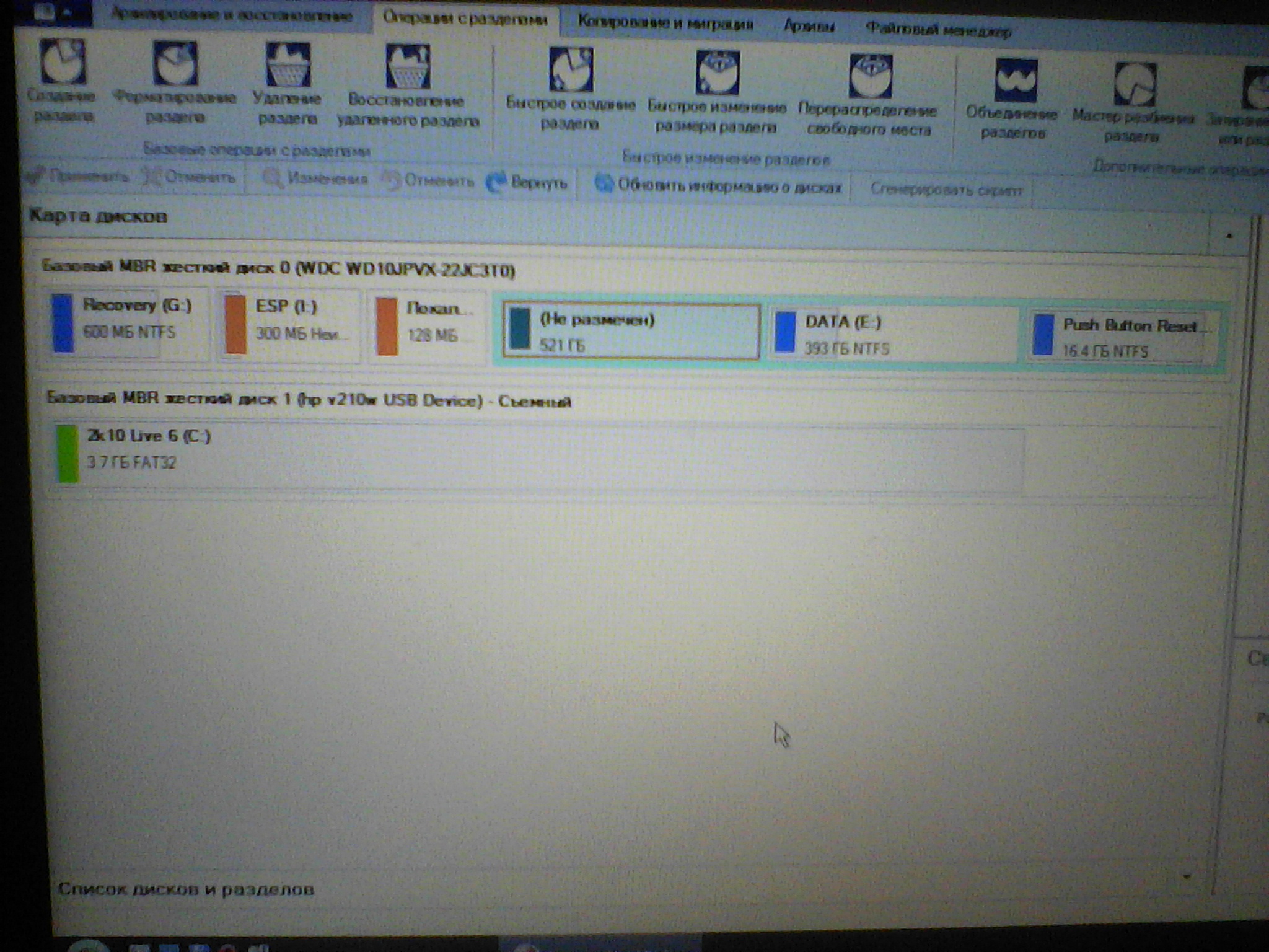Креплю разбивку ещё раз. Скажите какие разделы удалить и как потом поделить их? А то я уже нифига понять не могу