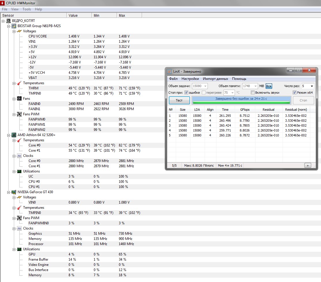 Kip-OK, пока не запускай, запусти бенч (cpu-z), и в хвмониторе глянь что по температурам