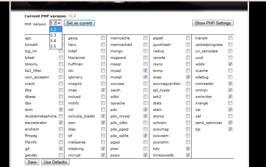 Знающие люди подскажите. Какую версию PHP выбрать на хостинге для лучшей работы версии 5.2.0? И что нужно обязательно выбрать вот из этих модулей? На скрине
