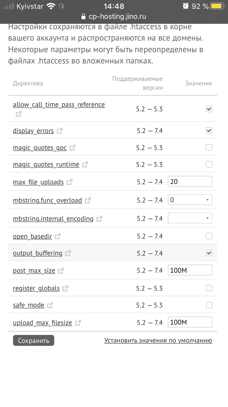 kantry, Да настройки все так же стоит ) Я по-другому решил проблему , перешёл на другой хост , я туда установил , там пока все работает ) да и по-шустрей сайт там работает ) Двиг хороший мне нравится , хочу над ним работать , конечно требует индивидуальные настройки , которые почему-то не везде они имеются , или имеются но они не работают ) а может мои знания в php не достаточны , поэтому хочу развиваться )) в любом случае большое спасибо ) ещё обращусь за помощью ))