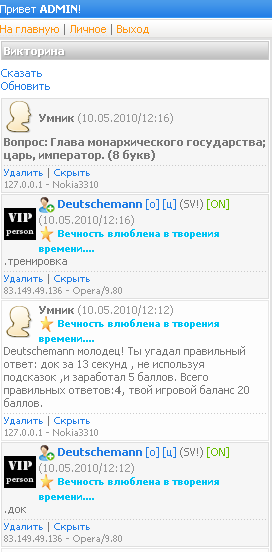 В викторине при правильном ответе, у умника такойже статус как у того кто правильно ответил. Вот скрин
