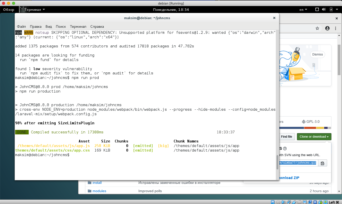 Поставил ноду 13 с той ссылки что я кидал выше, склонировал реп, запустил npm install, всё установилось, потом собрал npm run prod