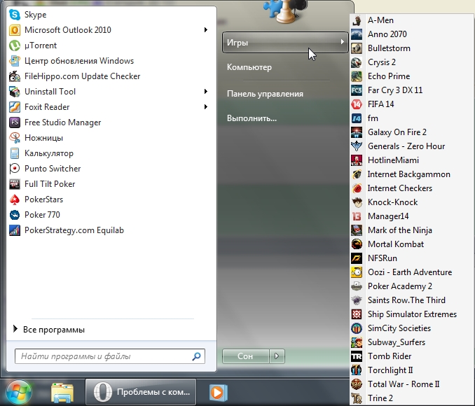зато все необходимое всегда под рукой в Пуск и в Играх.