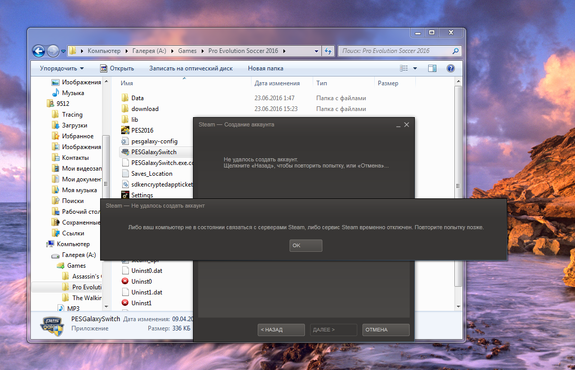 сегодня хотел попытаться играть в pes 2016 онлайн но не могу создать аккаунт через стим.не поможете?