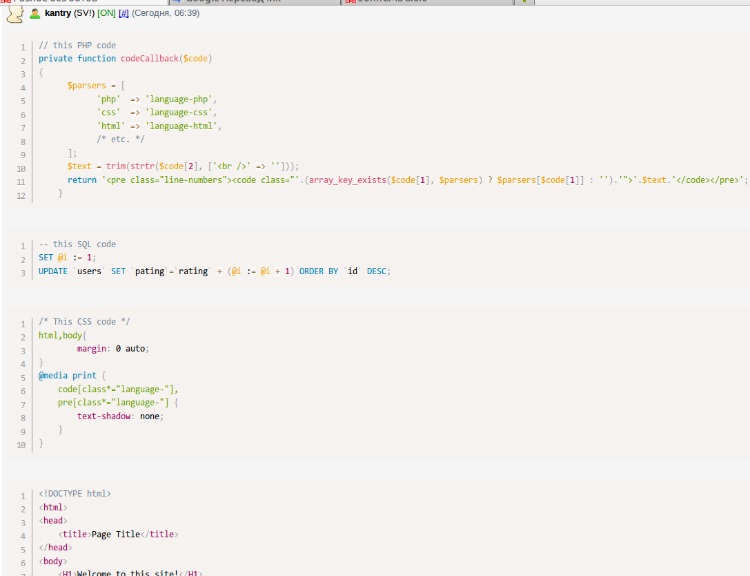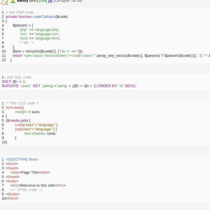 Порылся я в highlight.js, это же для раскраски кода, и не более того ![]()