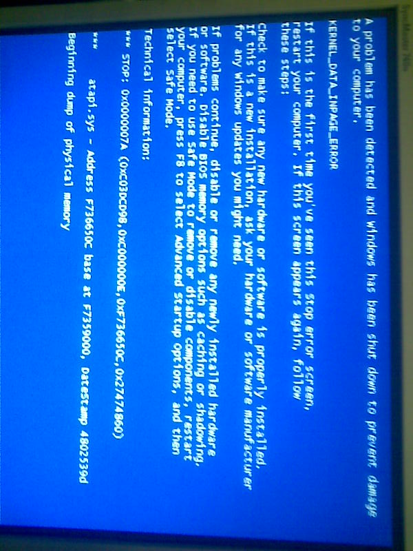 Ребят помогите, вообщем включаю комп, потом через 10 минут все зависает и появляется это (скрин). Что делать?