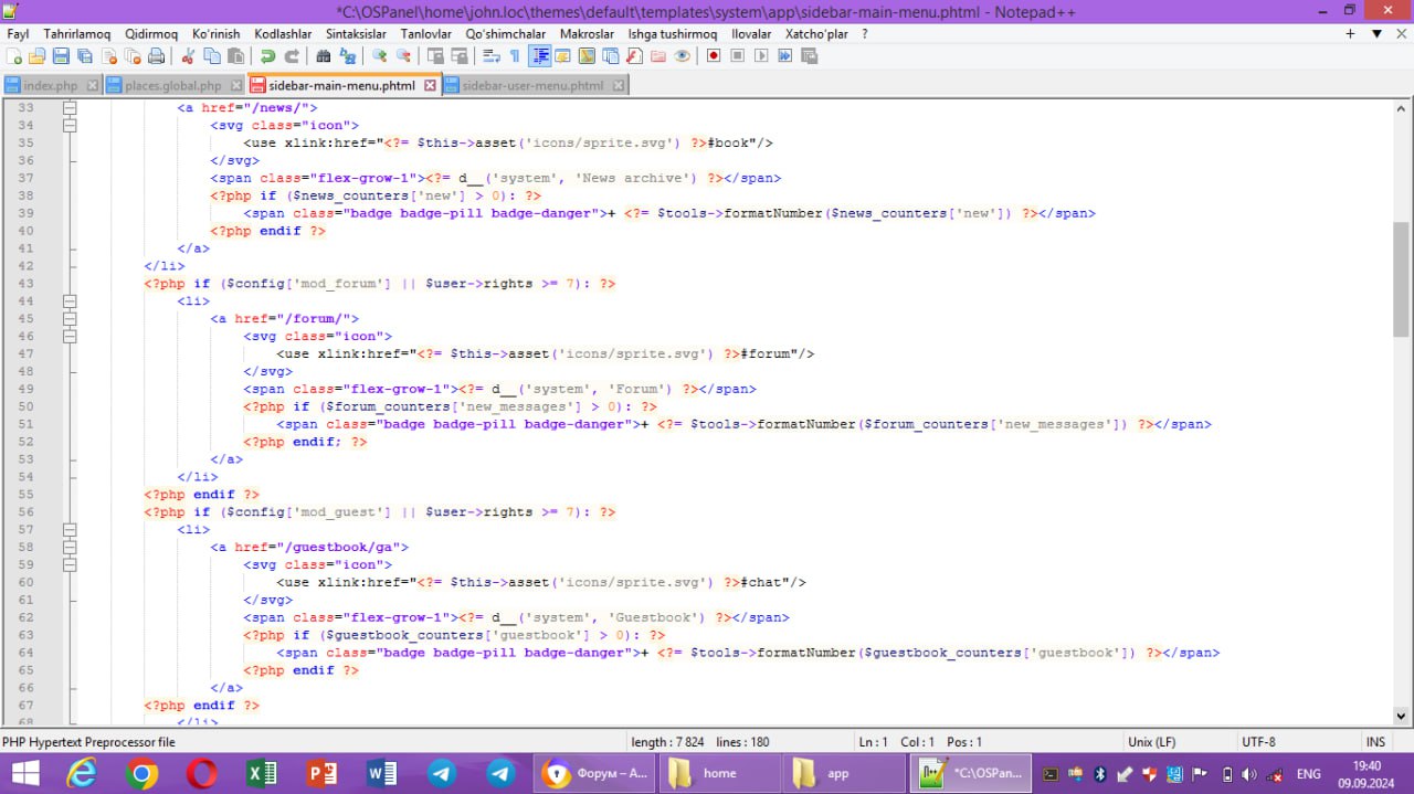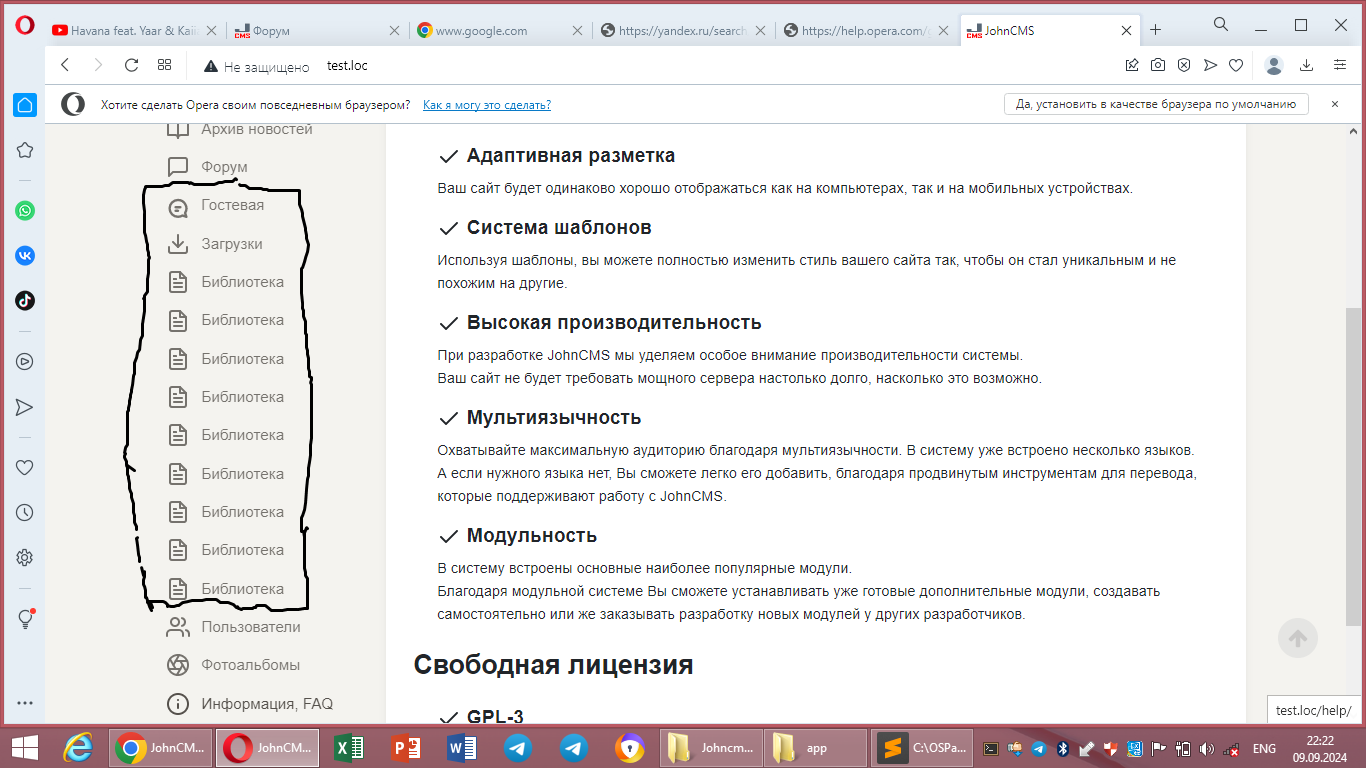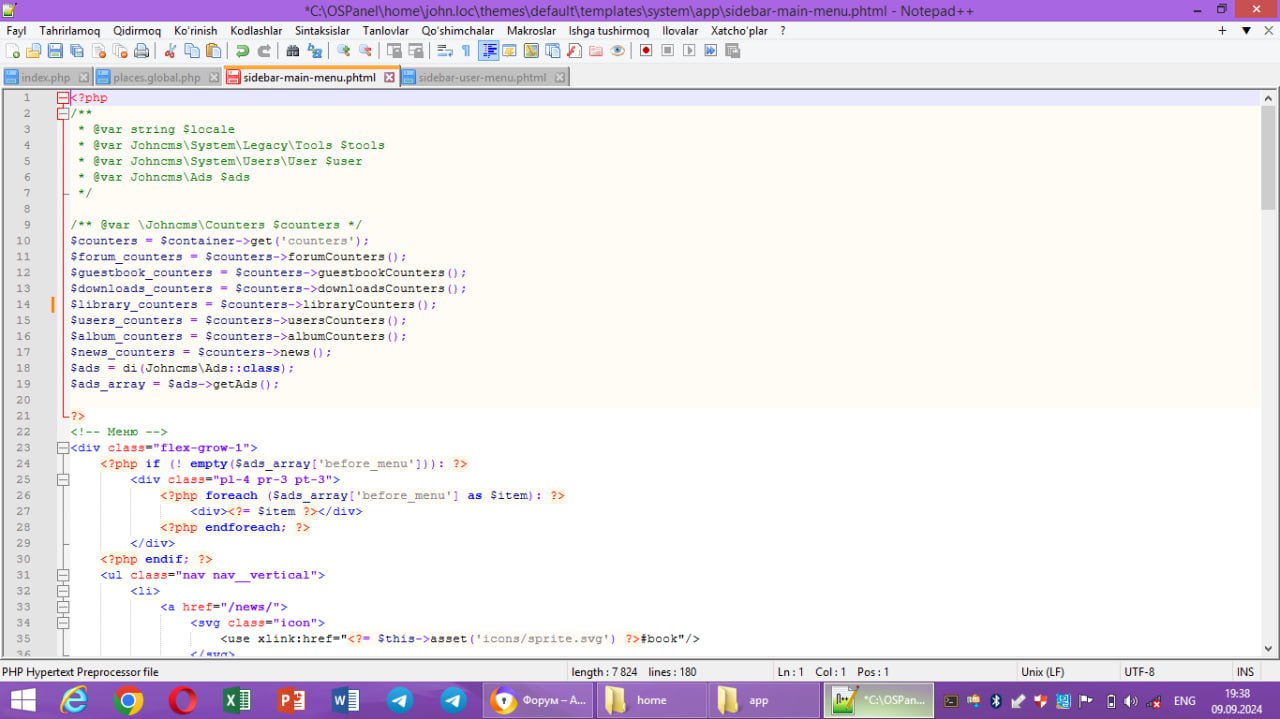 всем привет. !!! вопрос как нам изменить левое меню в johncms??? посмотрите на скрин, нам нужно изменить место, отмеченное красным, как его отредактировать (видела в какой-то папке, не помню этот файл...