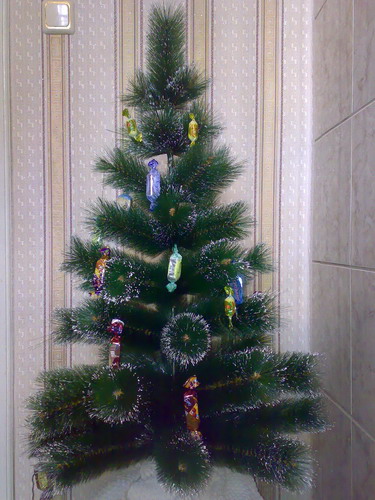 У меня бабушка в деревне всегда конфетами обвешивала. Мне потом в кайф было их с ёлки срезать