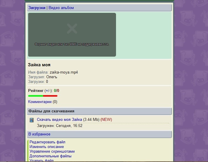 Добавил себе в загрузки видео mp4 (разрешённый мною там тип файла), но после загрузки пишет тип файла не поддерживается, что делать?