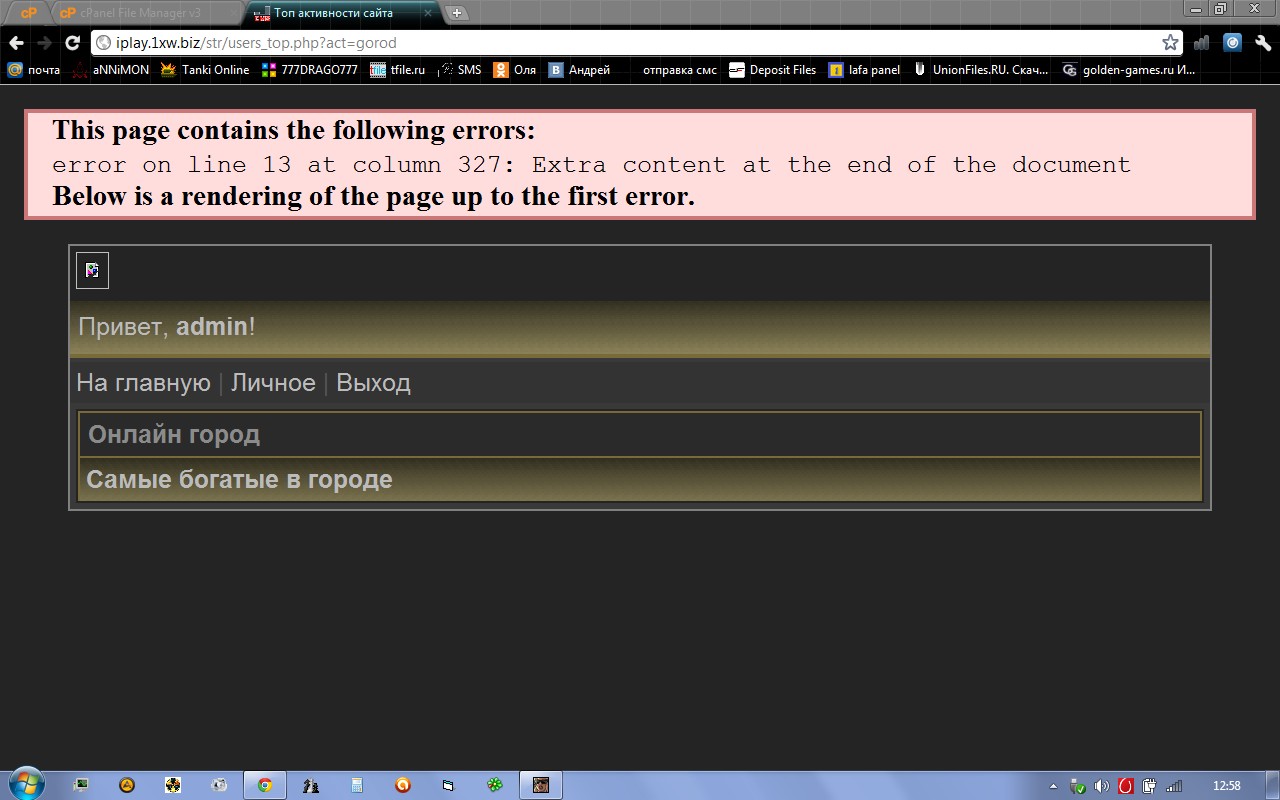2. В банке (онлайн города), не можна поменять балы сайта на $ города, показывает что у меня 0 балов сайта, а в реале в меня их 42.