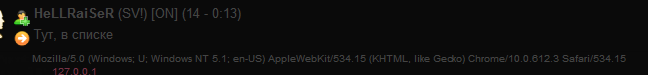 God (26.06.2011/17:24)Вот тут айпишник должно показывать и юзер агент, но в такой темноте даже не видать