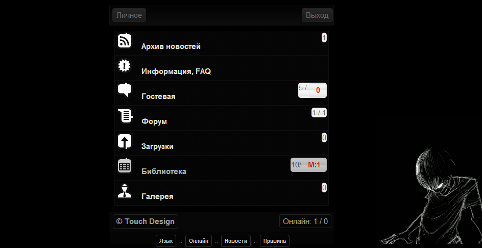 Touch дизайн в темных тонах, но при этом хорошо читаем