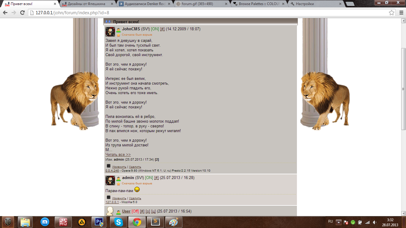 Flash (25.07.2013 / 21:22) Решил научиться делать дизайны Как понятно с названия топика, в этой теме буду выкладывать свои творения на суд и на попользоваться. Майн гуру Лена, за что ей огромное спасибо. И так, поехал