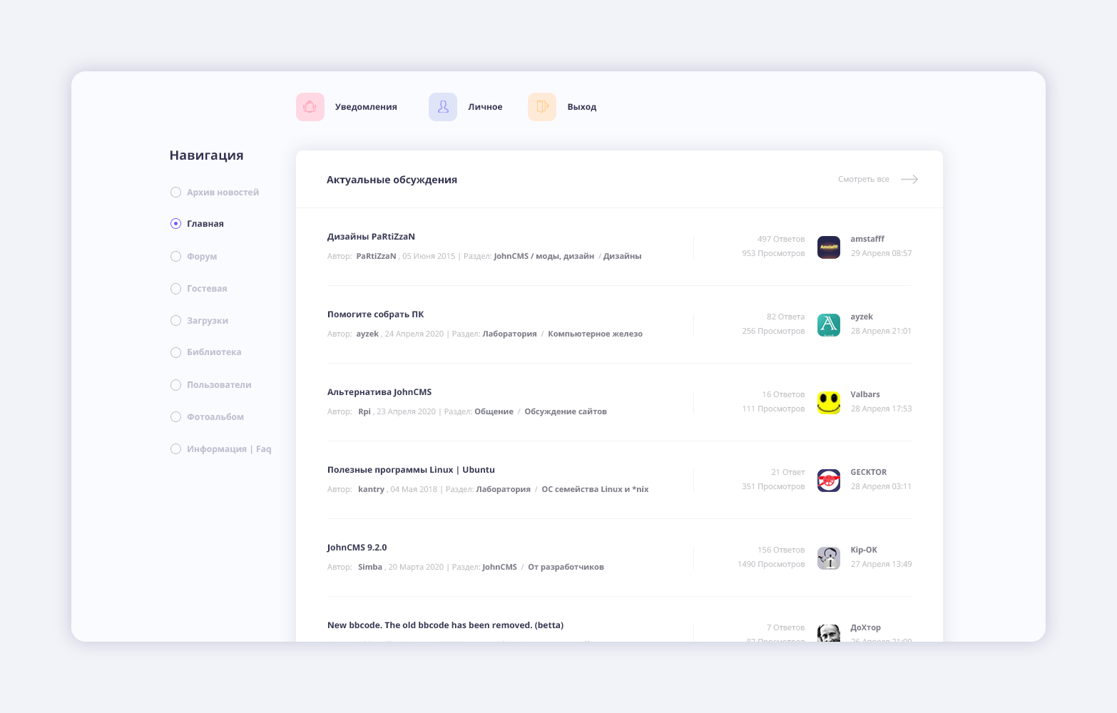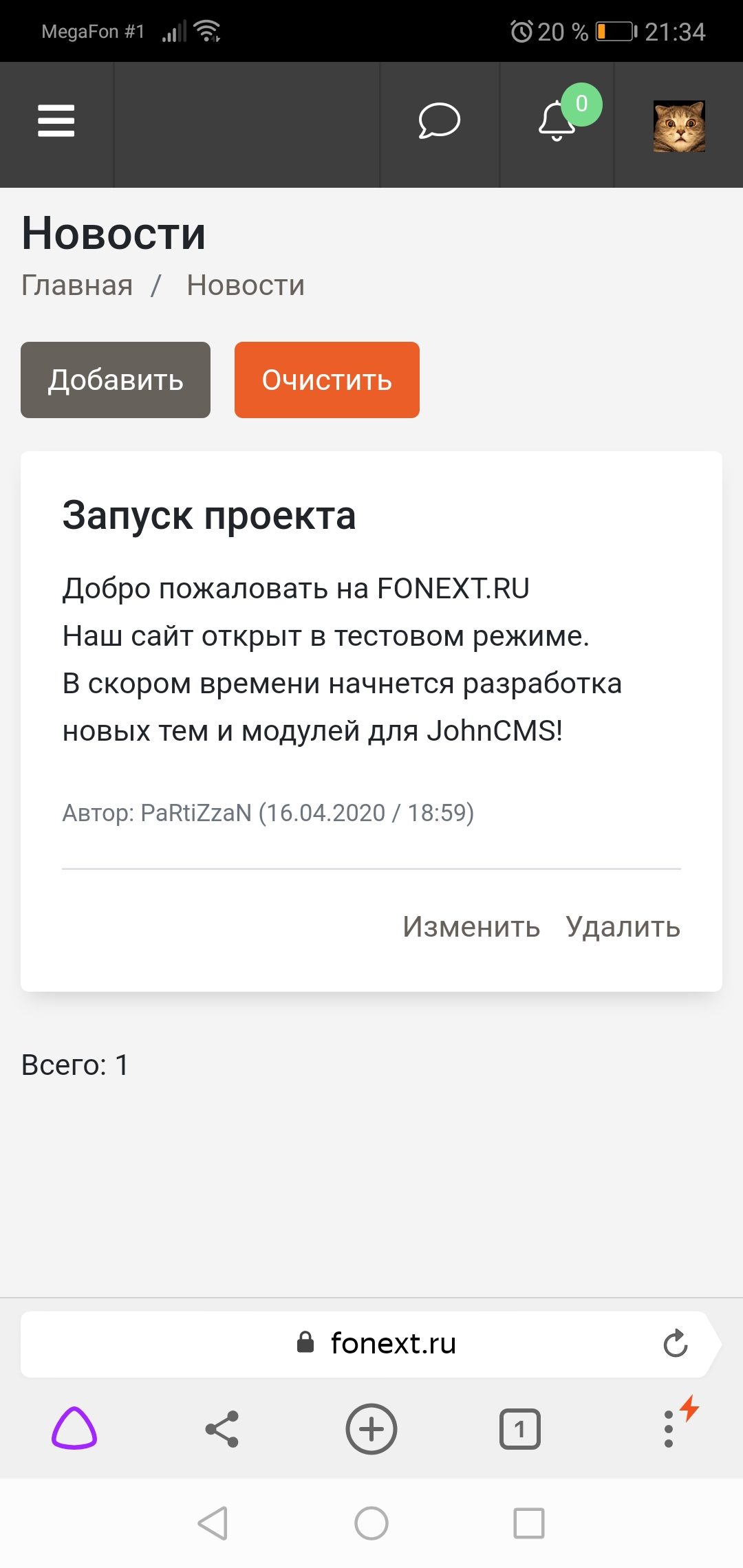 Темная тема для JohnCMS