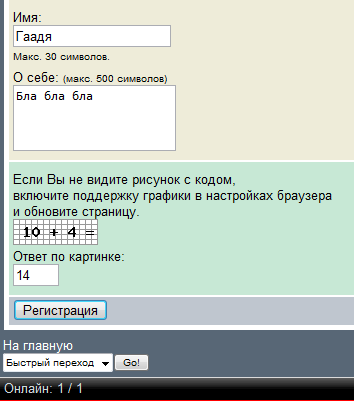 Регистрация с капчей со сложением Скриншот