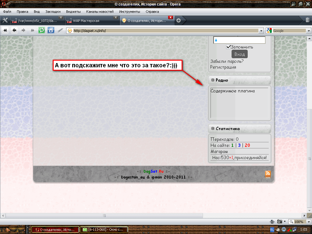 Крутой сайт! особено темка угарная фон корявый а боковое меню и сам диз цвета угарные, потом буду кляньчить боковое меню![]()